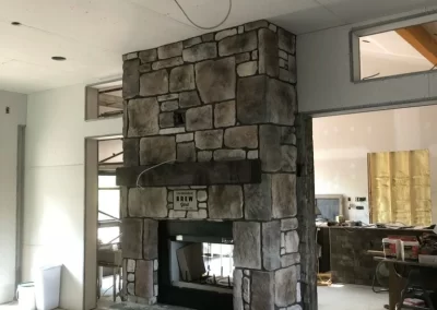 All of our artificial stone veneer is a combination of white and gray cement, lightweight aggregates, iron oxide pigmentation, and water. For each veneer pattern, latex molds are manufactured from natural stone. The empty molds are then hand dusted with iron oxide pigmentation to color the face of the stones. Afterwards the cement is added and the molds are vibrated to ensure that air bubbles are eliminated. After the cement has cured, the stones are taken out of the molds and are boxed for sale.